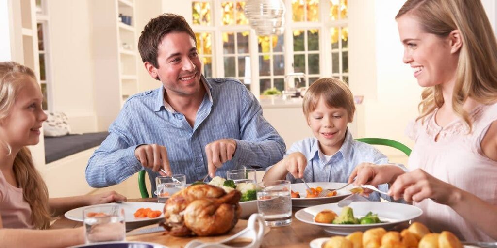- 家族全員が活力に満ち、笑顔の絶えない食卓を囲んでいる