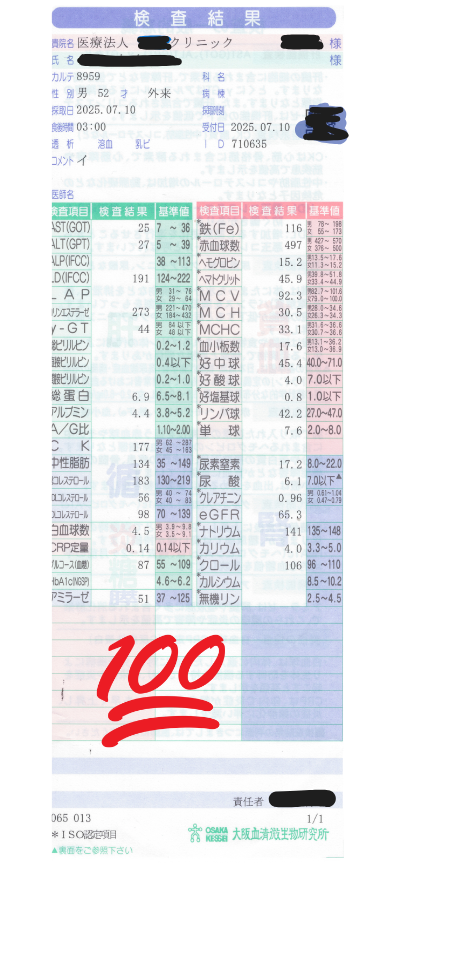 小林さん(52歳・男性)講座で学んだ知識を活かし、血液検査では全項目異常なしを達成しました!